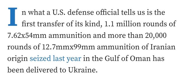 不過目前沒有消息表示這些槍械也會轉交給烏克蘭 考慮到烏克蘭和俄羅斯正在進行的戰爭 這一百萬發俄系步槍子彈無疑是對烏克蘭的一個好消息 有鑑於伊朗對俄羅斯提供的大量支持(例如無人機方面) 這個援助某種程度上具有一點諷刺的意味 -- https://i.imgur.com/aGhESF2.jpg