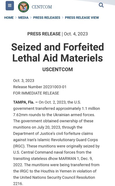 如題啦 作為CMF聯合海上部隊建設的一部分 美國軍方與各個盟友和合作夥伴定期進行反走私行動 遏止武器和其他物資從伊朗流向葉門 在這一篇分享開始前 先帶大家進行回顧 #1Zx2TvP0 內容是說在2022年12月9日 當時USNS Lewis B. "Chesty" Puller遠征基地艦正在進行任務 並發現了一艘名為Marwan 1的無國籍單桅帆船 隨後基地艦的安全小組登船後發現了超級大量的彈藥 中央司令部當時表示這些彈藥 是從伊朗伊斯蘭革命衛隊運送給葉門胡塞叛亂分子的 並違反了聯合國安理會第2216號決議 此外那一艘帆船上還有11名索馬利亞國民 一名肯亞國民和一名巴基斯坦國民 美國政府於今年7月20日 透過司法部對伊斯蘭革命衛隊提出民事沒收索賠 以便獲得了這些彈藥的所有權 https://i.imgur.com/xREvEt7.jpg