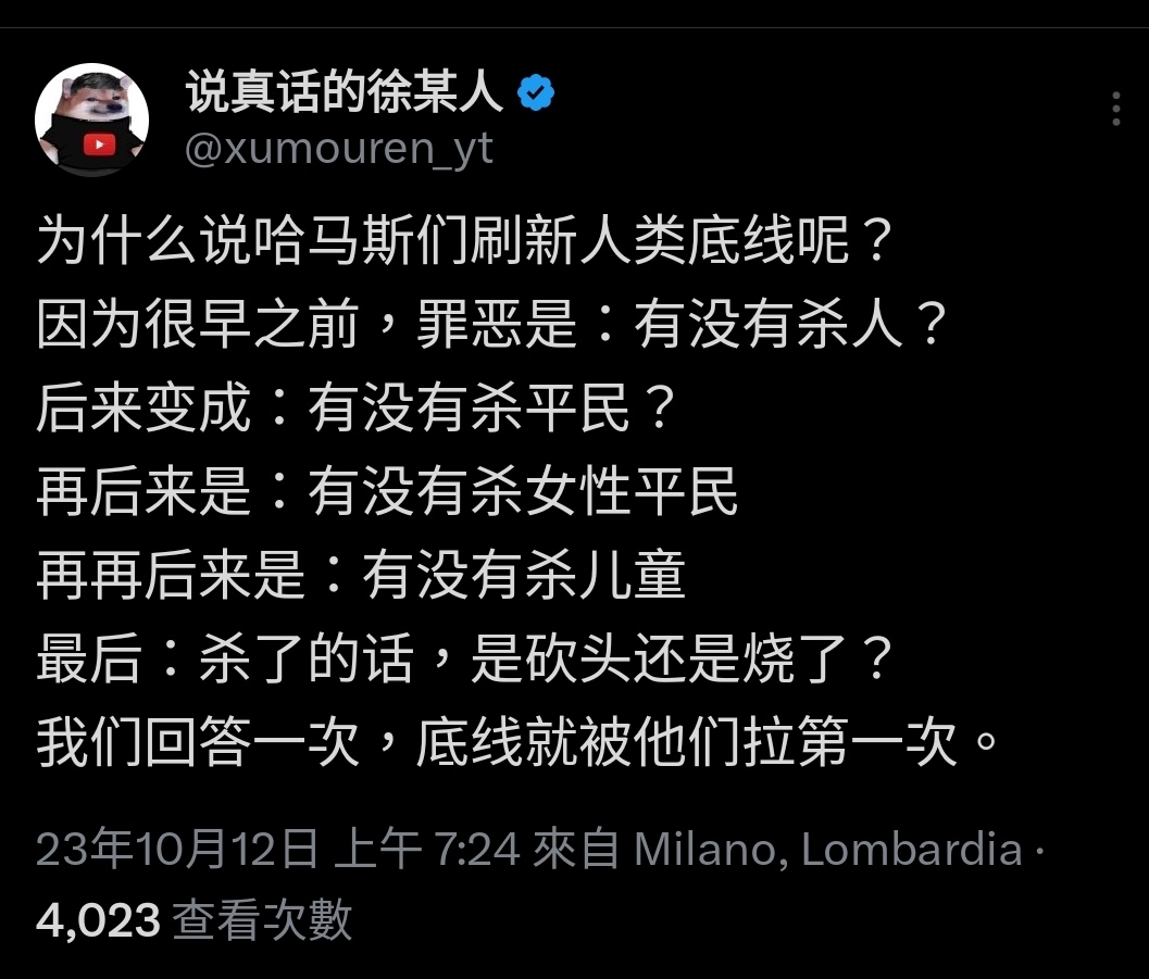 推 toulio81 : 早就知道那些親哈瑪斯的會說什麼,要說服的只有中 10/12 10:28