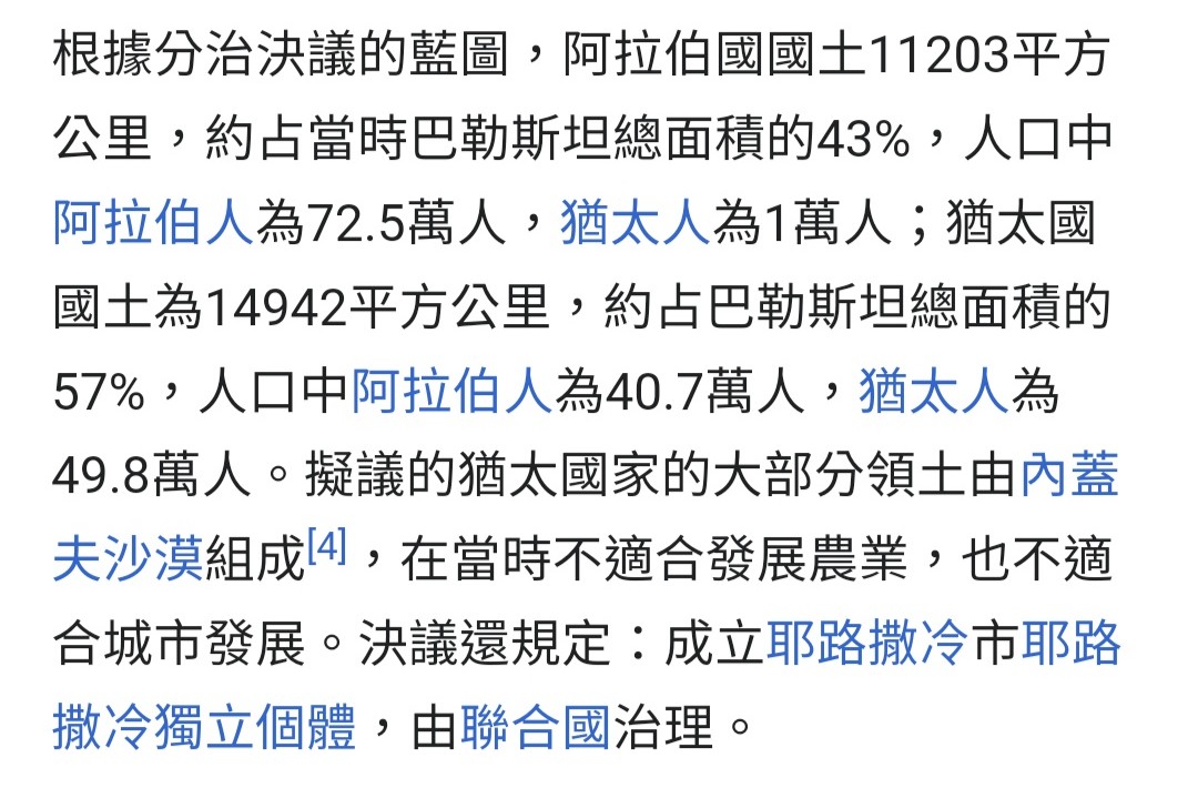 推 ethanul : 還在聯合國181號決議喔 聯合國181號決議讓40%猶太人 10/13 16:13
