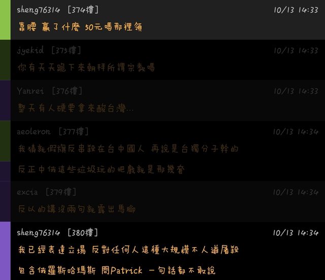 sheng76314於推文內人身攻擊板友