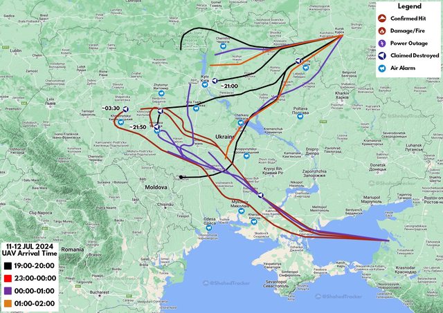 【俄羅斯 Shahed 無人機攻擊路線】