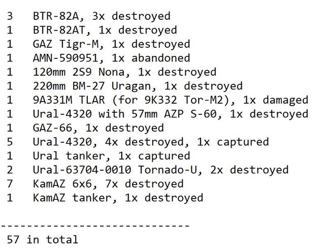 目視確認損失軍事裝備統計 2024.07.12 ~ 07.14