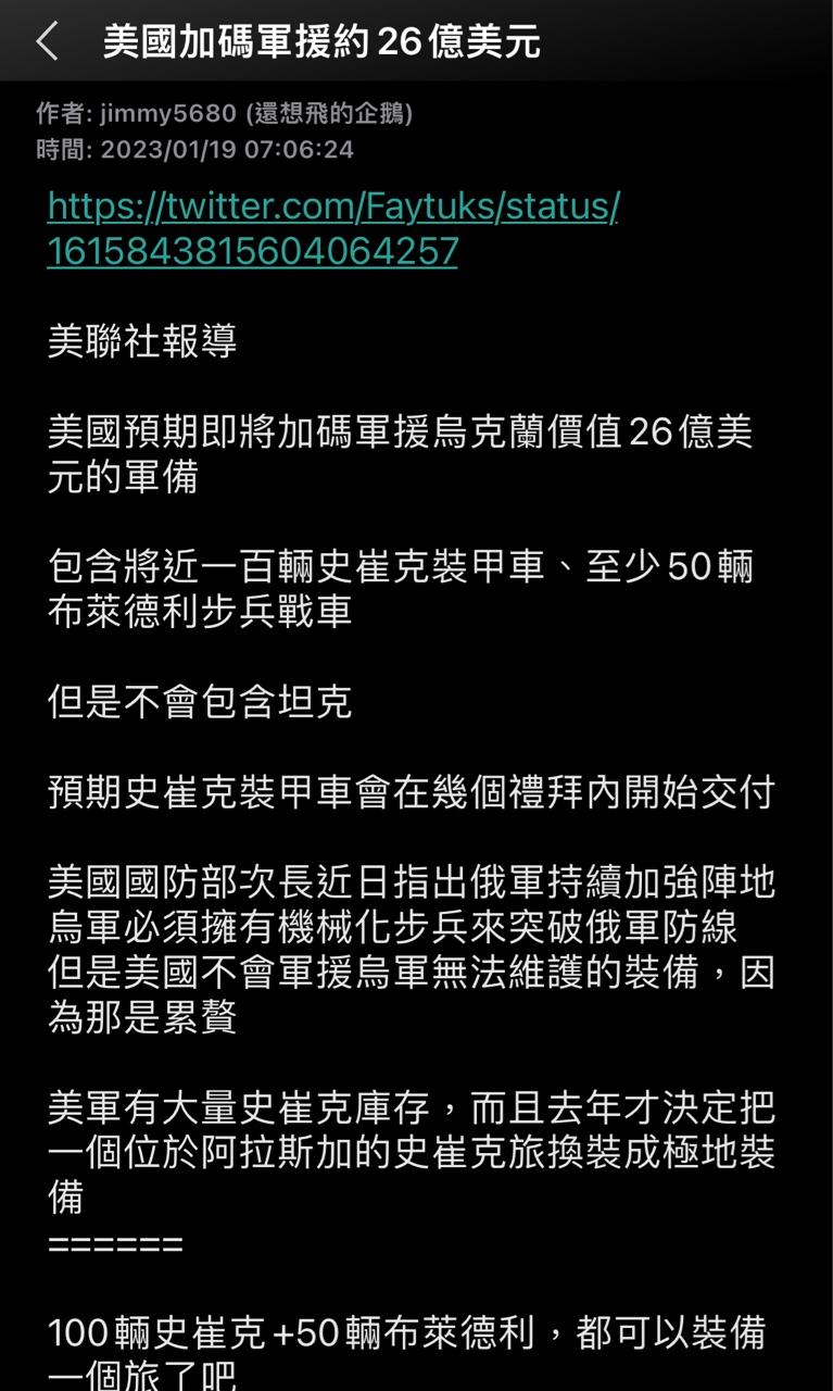 aegis43210 : 差不多,算是還去年支持烏軍集中突破的板友公道 07/19 10:38