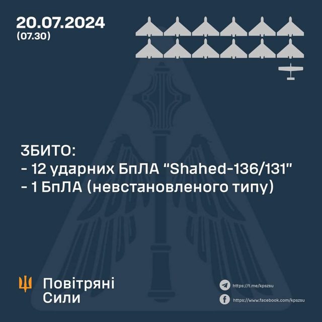 7月19日至20日夜間,烏克蘭防空部隊擊落了