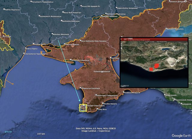 據稱,塞瓦斯托波爾以南遭到攻擊的地區是