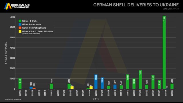 , 2024 年 7 月交付 5,000 枚 155 毫米 HE 砲彈
