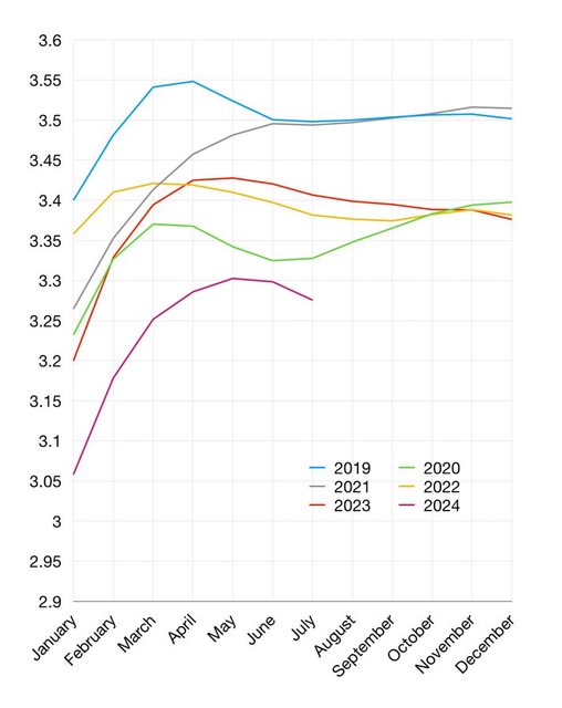分析顯示,2024年整體鐵路運載量明顯低於
