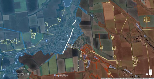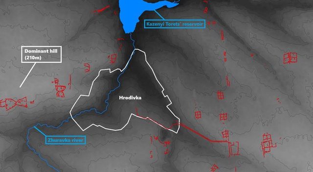 在 Hrodivka 本身,白線代表下一條堅強的後備