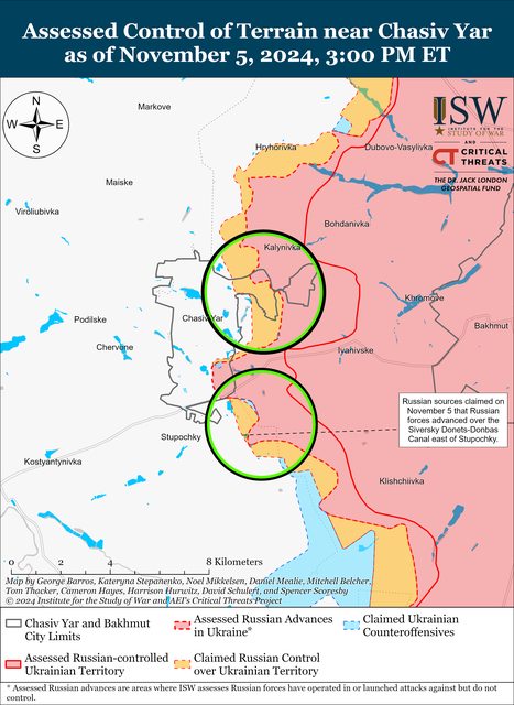 11 月 5 日,俄羅斯軍隊在該地區持續進攻