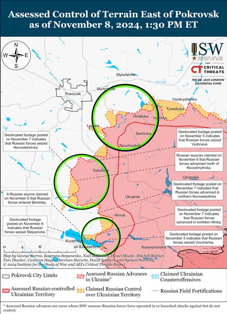 11月8日,俄軍繼續向波克羅夫斯克方向進攻