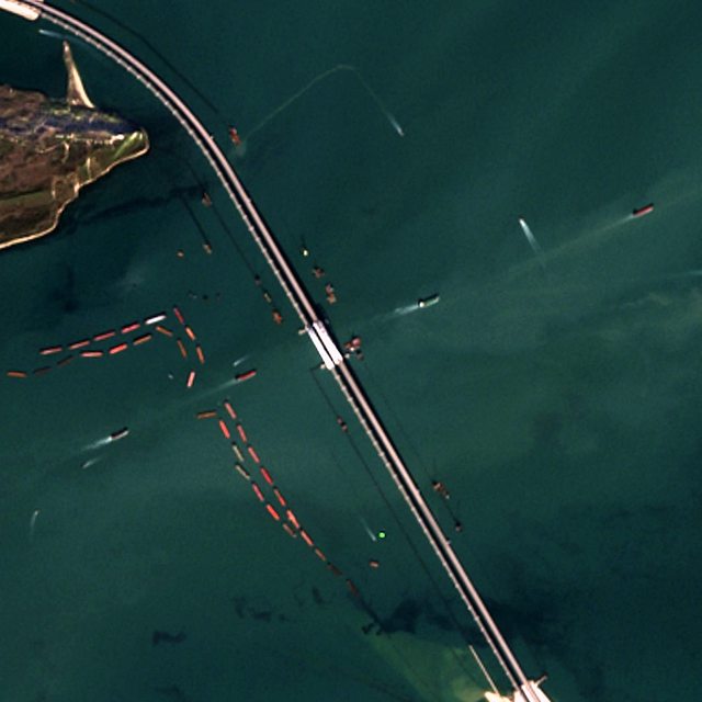 今天的衛星圖像顯示,克里米亞大橋主跨