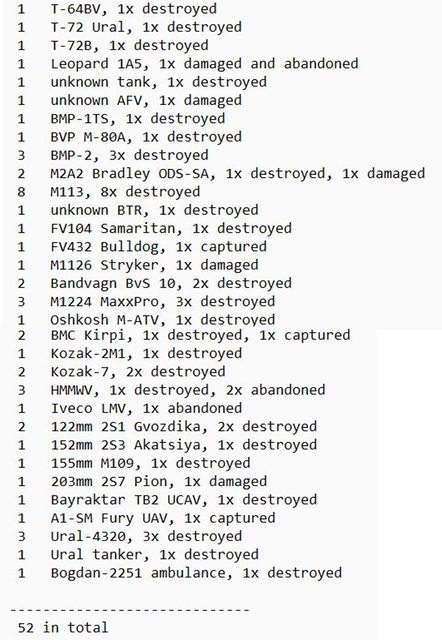 目視確認損失軍事裝備統計 2024.11.05 ~ 11.11