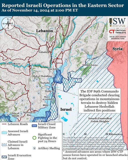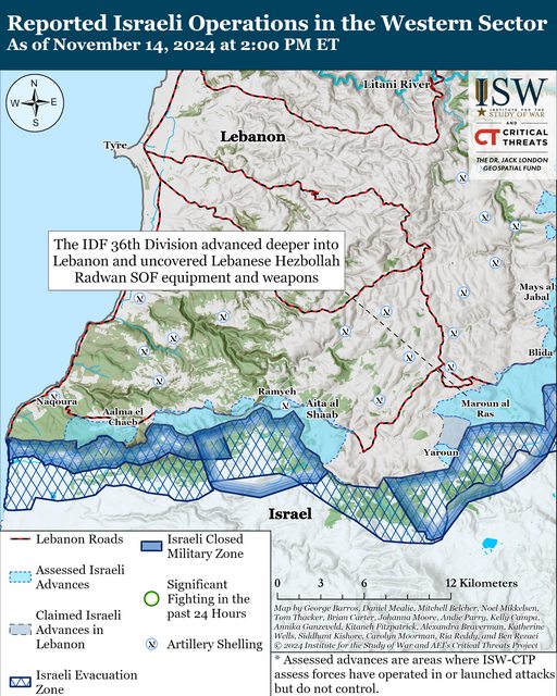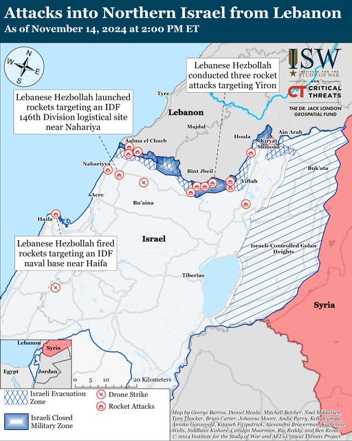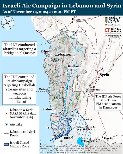 黎巴嫩消息稱,自 11 月 13 日 CTP-ISW 上次