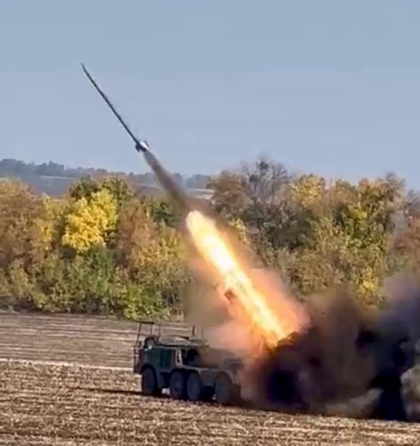 Uragan 向俄羅斯陣地發射 220 毫米火箭