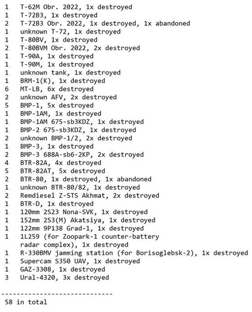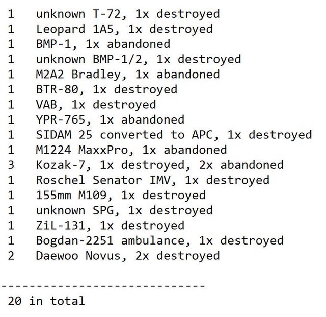 目視確認損失軍事裝備統計 2024.11.14 ~ 11.16