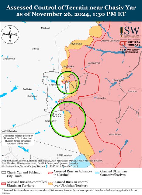 11 月 26 日,俄羅斯軍隊在該地區持續進攻