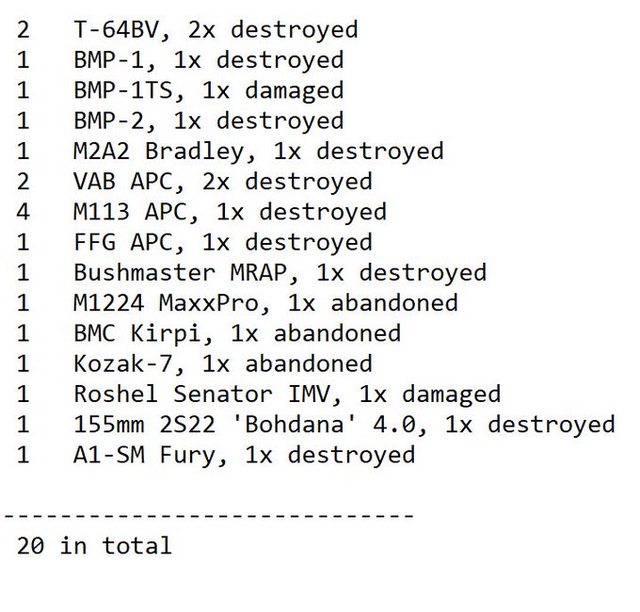 目視確認損失軍事裝備統計 2024.11.23 ~ 11.26