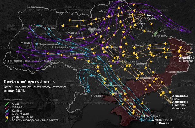 11 月 28 日今晚,烏克蘭的許多地區成為
