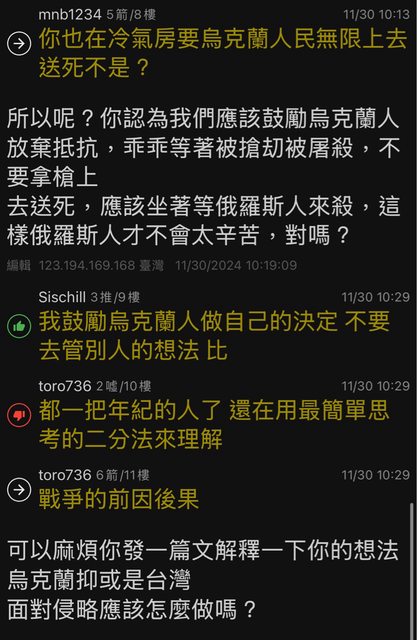 → tonyxfg : 些罵的人壓身家去幫烏克蘭啊 11/30 11:13