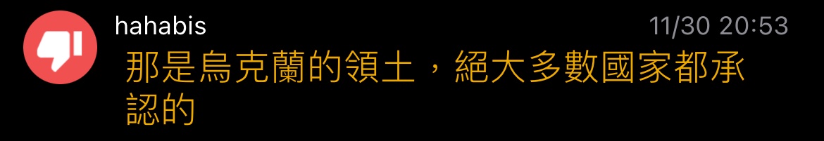 → hahabis : 講的好像普丁全面入侵烏克蘭是應該的一樣 11/30 20:55