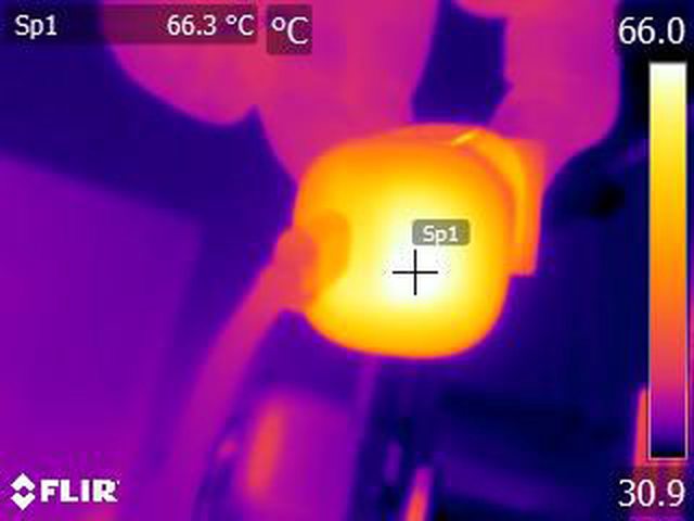 ▼110V輸入下輸出20V/3.3A維持31分鐘自動截止後連接埠處的紅外線熱影像圖