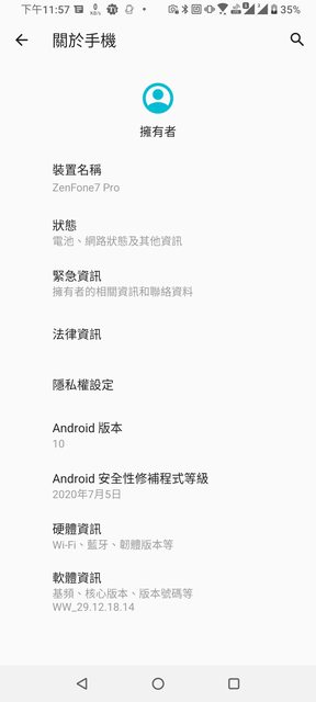 : 如果zenfone 7pro 升級到android 11後再刷回去android10,版本會是WW-29.14.53.23,但