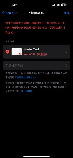 (甚至離開家庭方案之後,都還是無法刪除我哥的信用卡資料)