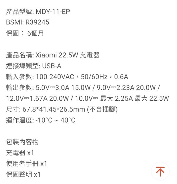 請問我推文的小米22.5W充電器