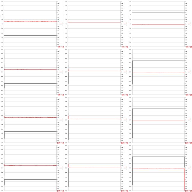 ▼5V/9V/12V/15V輸出1A/2A/3A放電的電壓電流圖表如下所示