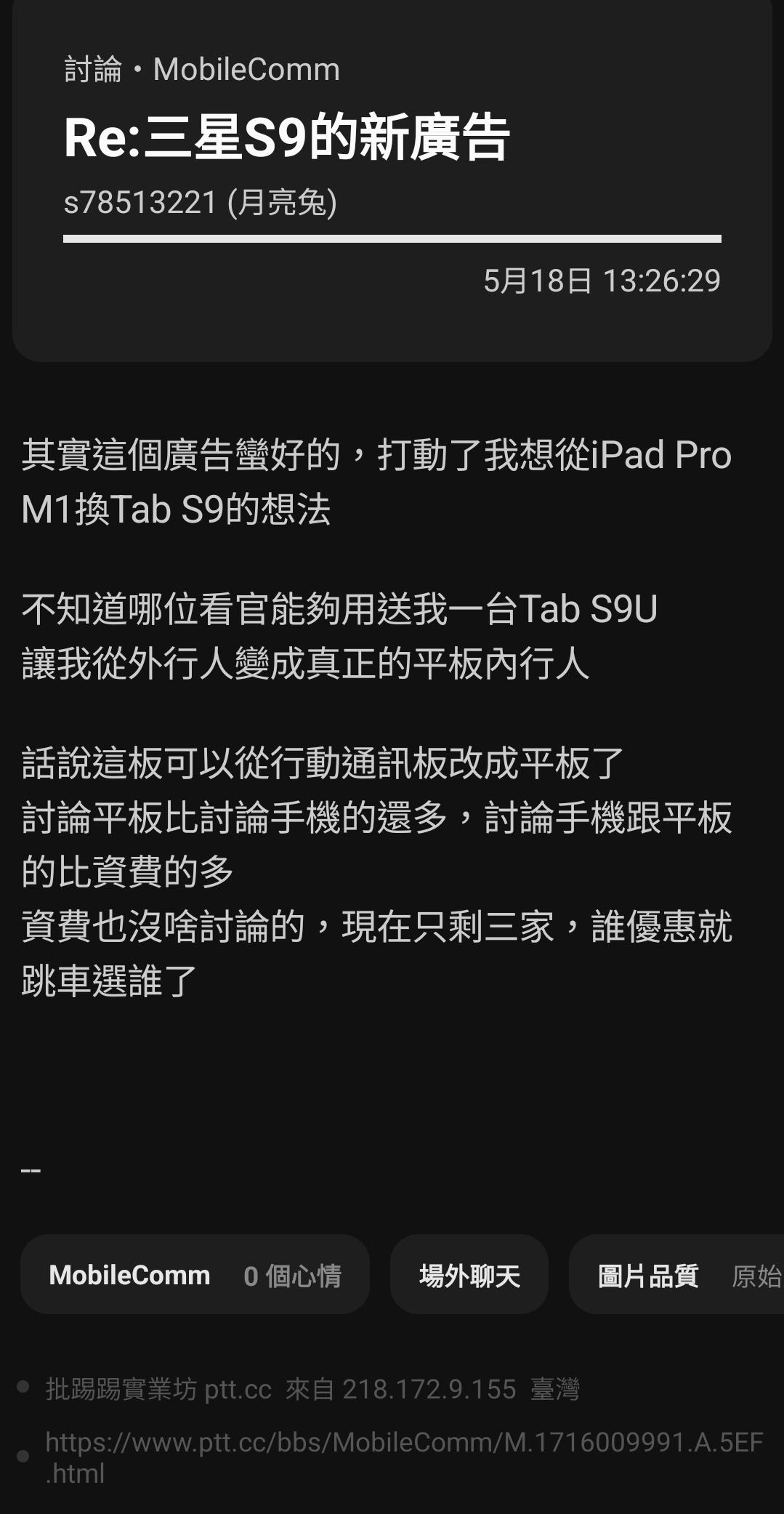 ltytw : 喔。是tab的s9啦。想說手機的s9怎麼了 05/18 11:30