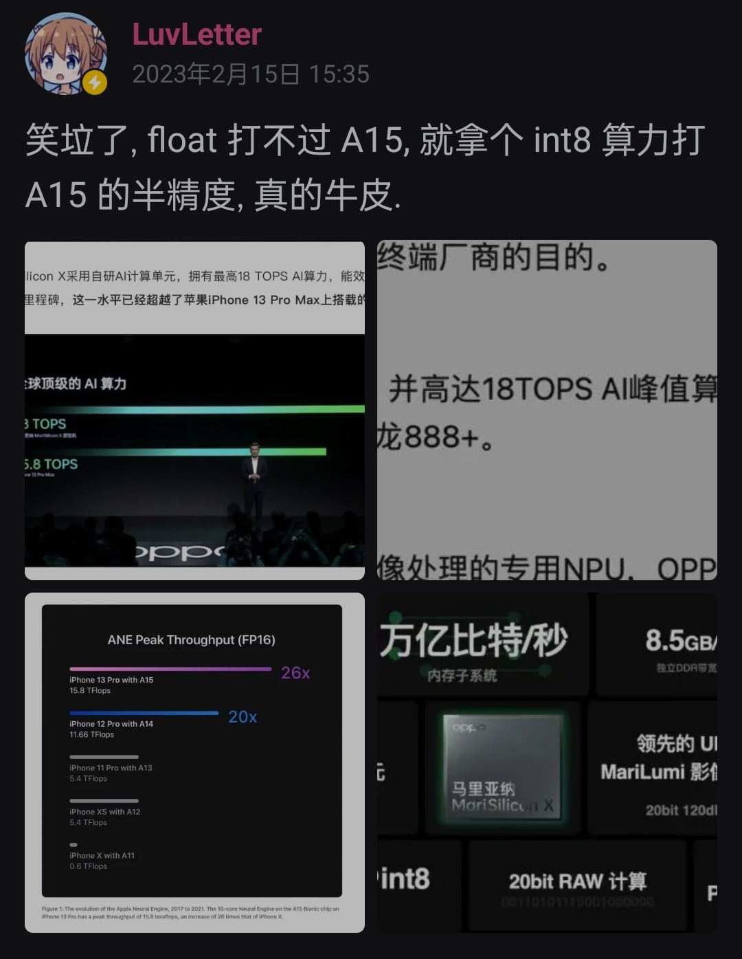 → square4 : 拿蘋果fp16性能(tflops)對比友商int8性能(tops),05/22 12:50