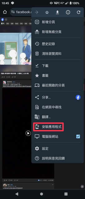也一樣會變成「安裝應用程式」,但改回手機版後