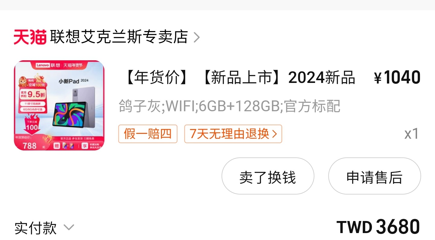 AEGIS1106 : 我是前陣子淘寶淘到小新pad12.7 花了6500 07/14 10:34