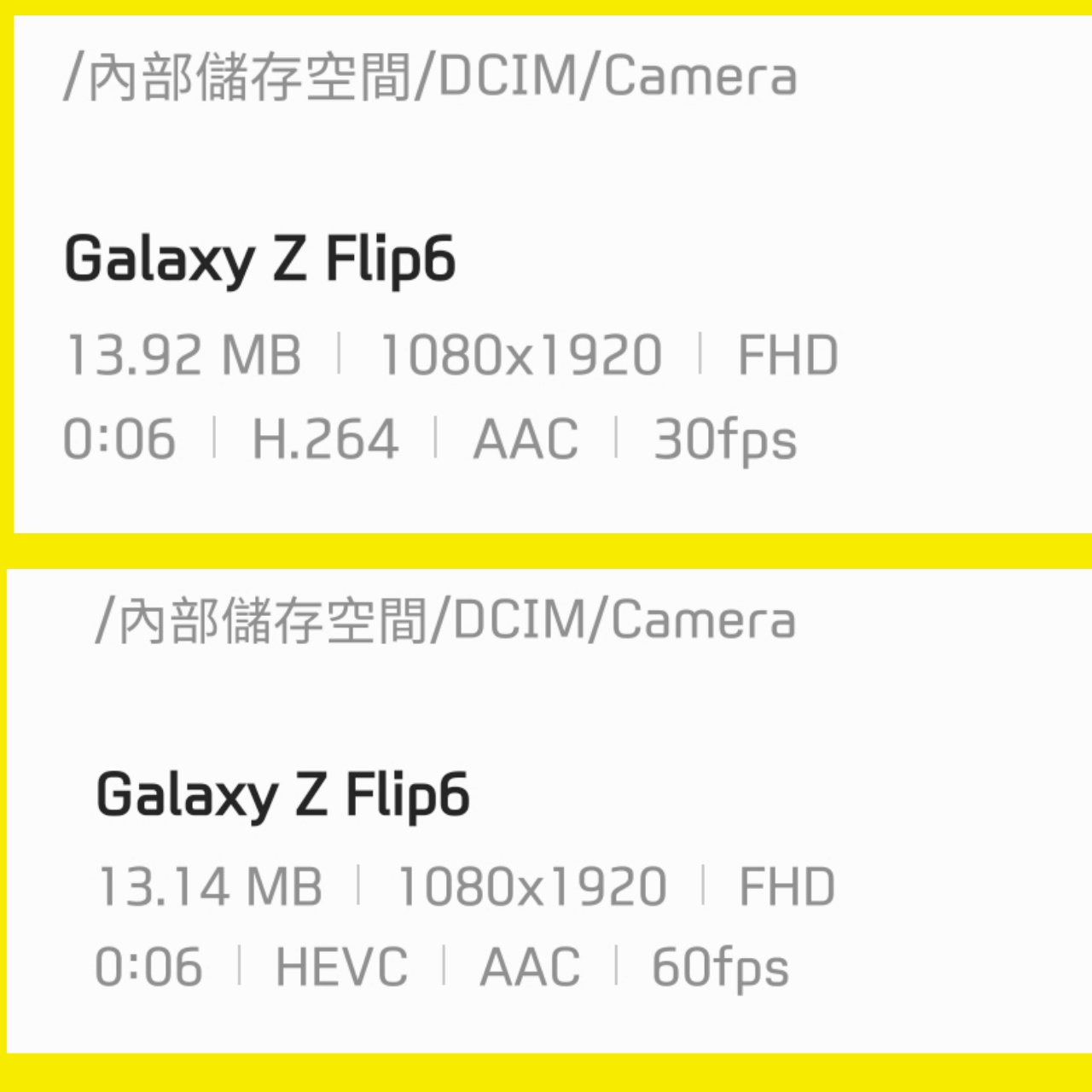 承上一篇OPPO Reno10 pro+測試 今天測試影片發現一個很神奇的事 同樣設定720p解析度 60fps比30fps順暢很多 結果佔用容量竟然還小一點點 我之前為了省空間選30fps覺得影片殘影很明顯看得不太舒服 現在選60fps超滑順 結果佔用空間跟30fps差不多 有時還更少? 這是什麼原理啊…. 多一倍的格數竟然佔用空間沒加倍還會更少? 有OPPO手機的可以測試看看是不是bug啊 30fps https://i.imgur.com/45OypAa.jpeg