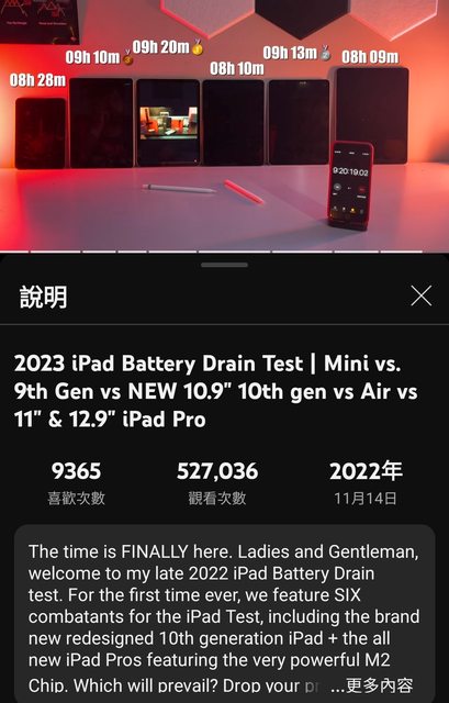 標題Re: [情報] 2024 iPad 各機型續航測試 Pro mini Air