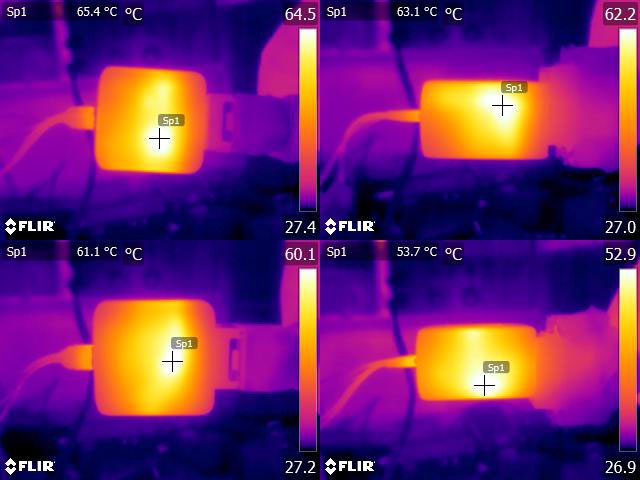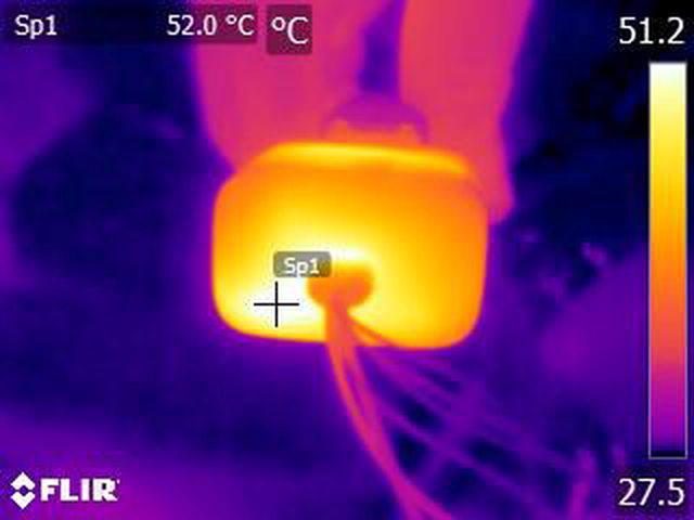 ▼充電器輸出30W一小時後充電器的紅外線熱影像圖