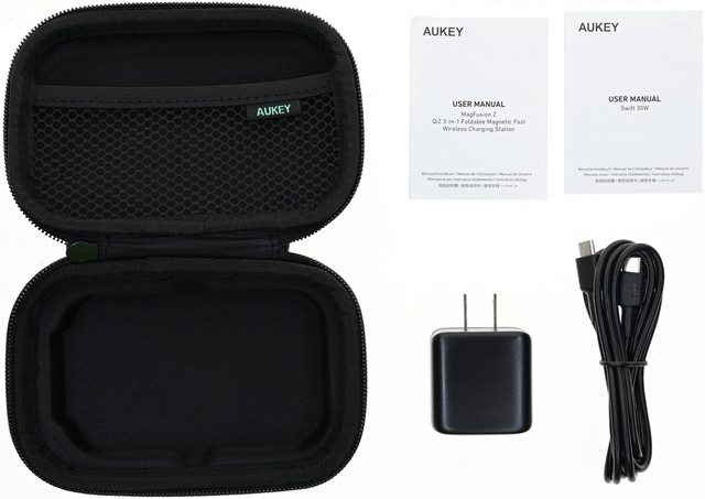 ▼包裝內容有收納包、AUKEY MagFusion Z Qi2三合一磁吸折疊式旅行無線充電盤