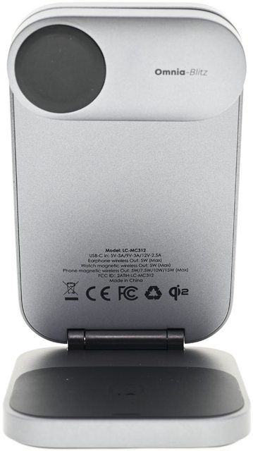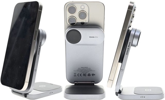 Omnia-Blitz字樣橢圓區域為收納狀態的Apple Watch磁吸充電盤