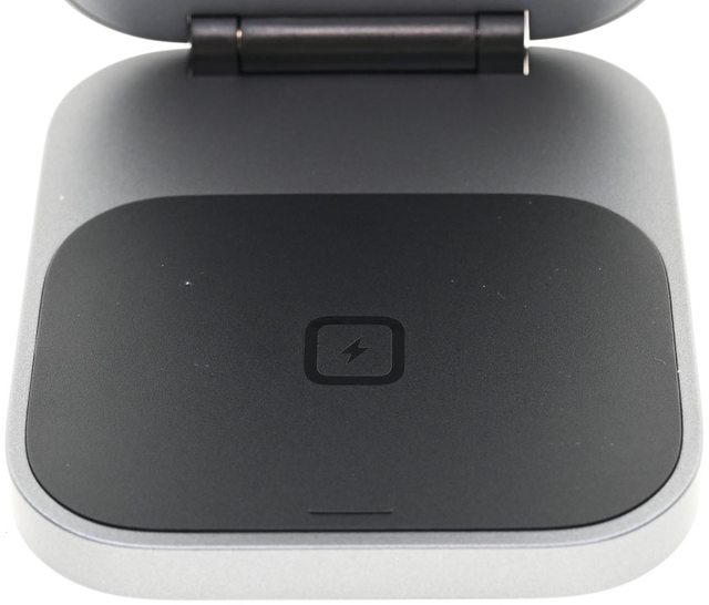 ▼AUKEY MagFusion Z Qi2三合一磁吸折疊式旅行無線充電盤折疊狀態下正面,閃電標誌