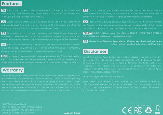 ▼外盒底部有多國語言產品特色、英文保固說明、英文宣告、廠商資訊、產地(中國)、認