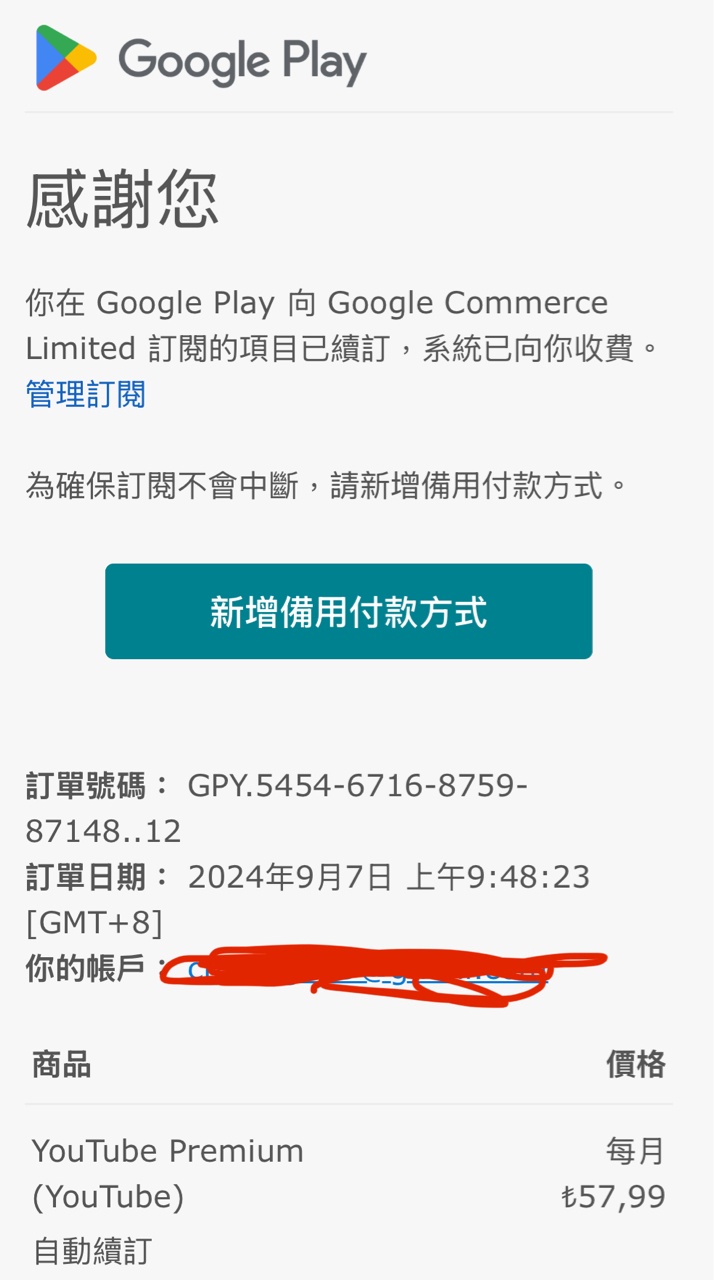 推 onizukag : 想問問有人是用Google play扣款被退的嗎?我YT網站 09/21 14:20