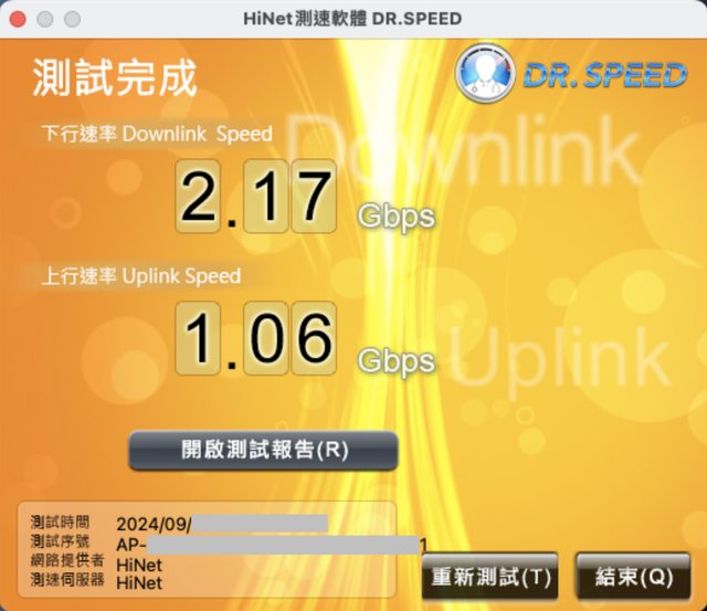 → g6889688 : ctes940008大:WiFi測速,下載:395Mbps 上傳:312Mbps 09/27 00:13