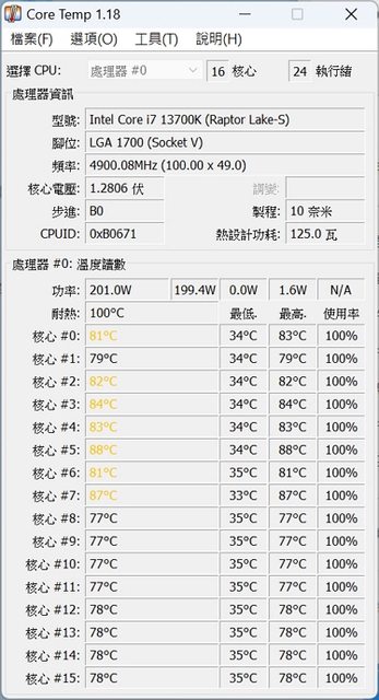 13700K @1.2v 4.9G 空冷 FPU 溫度