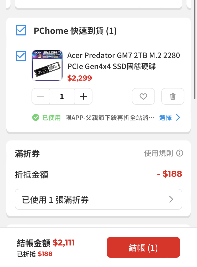 推 ackes: 提醒一下 還可以用188折價券 首頁能領 111.83.177.250 08/03 21:15