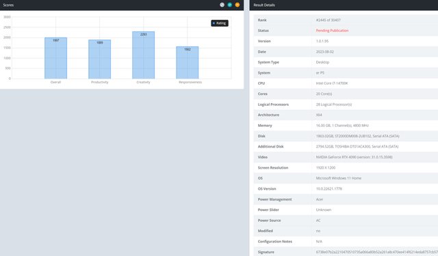 作為對比, i9-13900K 和 i7-13700K 得分分別為 2399 分和 2222 分