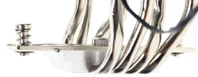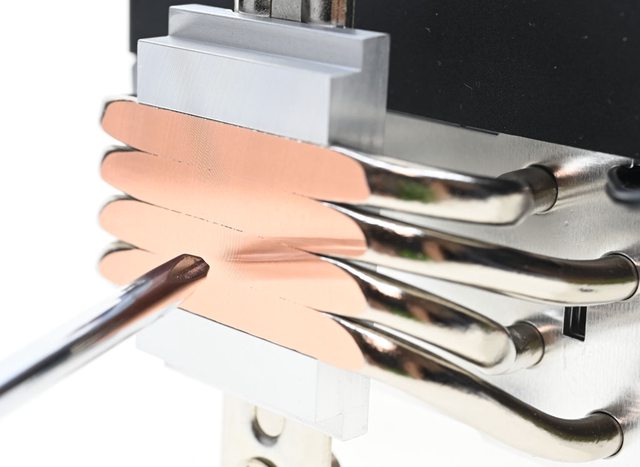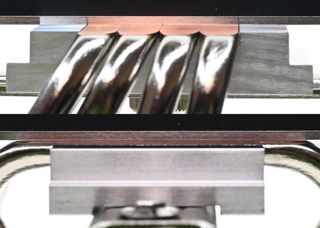 ▼處理器接觸面採熱導管直觸設計,4支外觀鍍鎳的熱導管削平,露出銅原色