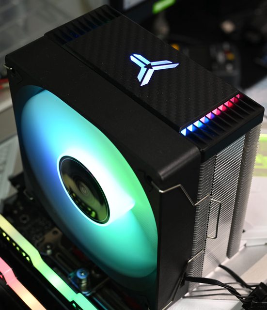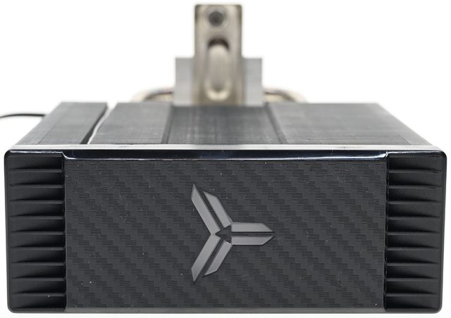 高密度鰭片可讓散熱表面積最大化,大面積碳纖維紋路裝飾的一體式頂部裝飾蓋上面有發