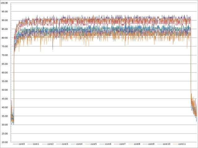 ▼高負載30分鐘CORE TEMP溫度記錄圖