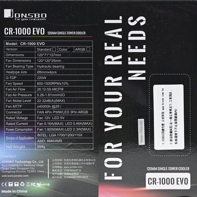 JONSBO喬思伯CR-1000 EVO散熱器支援Intel LGA 1700/1200/115x及AMD AM5/AM4平台,本
